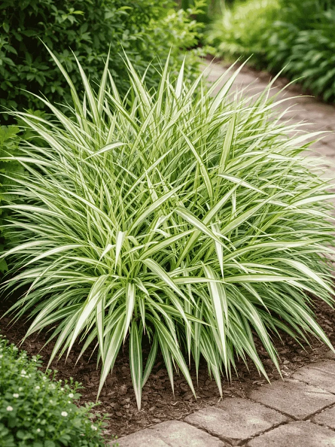 Фалярис тростниковый dwarf garters - это удивительное растение с тонкими стеблями и зеленой листвой, украшенной белыми полосками. Его высота может достигать 60-80 см, что делает его идеальным выбором для альпинариев, групповых и одиночных посадок. Этот злак предпочитает солнечные места и влагоемкие почвы, поэтому не забывайте о регулярном поливе. В июне и августе фалярис радует своими цветами, добавляя яркие нотки в ваш сад.