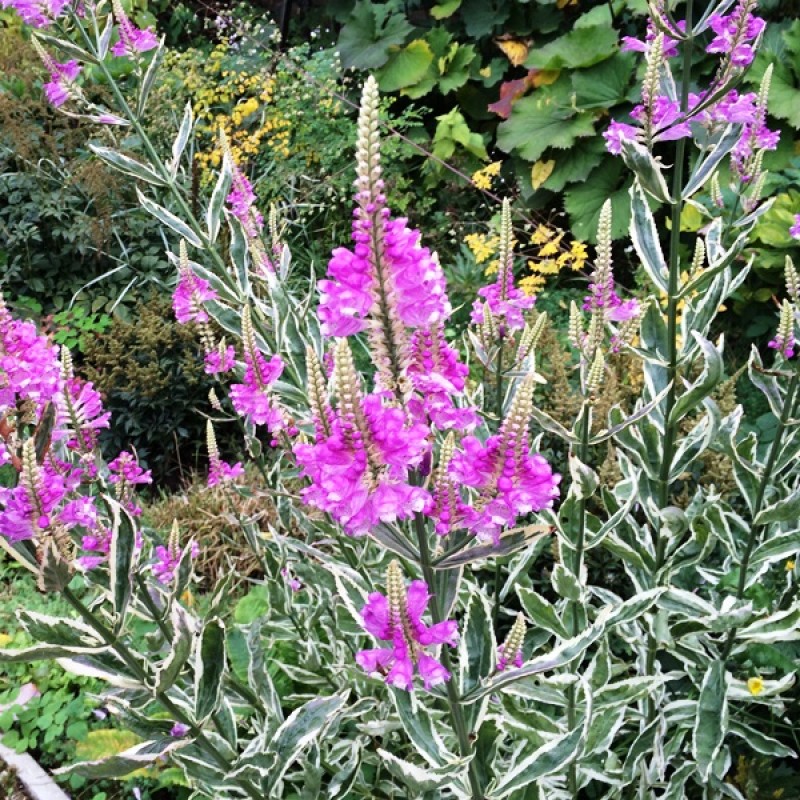 Рассада физостегии виргинской Вариегата (Variegata) представляет собой пестролистное растение с нежными розоватыми цветками, которые собраны в похожие на колоски соцветия. В последнее время этот сорт часто используется профессиональными цветоводами для декорирования парков и общественных садов, но и в домашнем палисаднике он вполне уместен. Легко размножается делением куста или семенами.