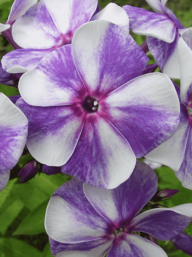 - ярко-зеленая декоративная листва. Проращивание семян не всегда дает ожидаемый результат, поэтому эффективнее рассаживать кусты. Цветки у флокса метельчатого Гжель бело-синие с маленькой пурпурной звездочкой в центре. Сорт прекрасно переносит зимовку без дополнительных укрытий и очень устойчив к грибковым болезням и поражениям вредителями.