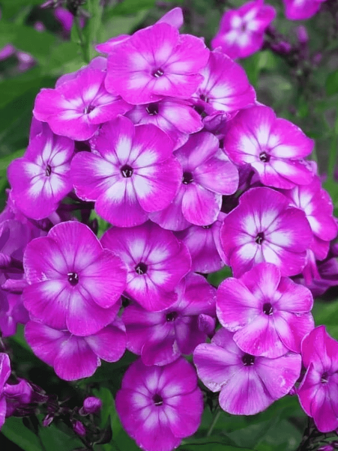 - крупные в диаметре цветки. Цвет у лепестков насыщенный пурпурно-фиолетовый. Центр каждого цветочка украшает большая белая звезда. Семена могут не сохранять особенности гибридных сортов, поэтому размножать лучше черенкованием или делением куста. Уход за флоксом метельчатым Лаура под силу даже начинающему цветоводу.