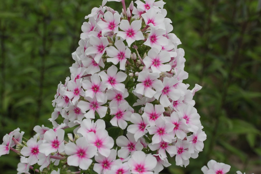 Рассада флокса метельчатого Рубиновая капля станет настоящим украшением садовых посадок. Этот сорт цветов отличается нежно-белой окраской лепестков и ярко-розовой серединкой. Окраска не выгорает на солнце, поэтому размещать кусты можно на открытых площадках. Соцветия красиво смотрятся в букетах.