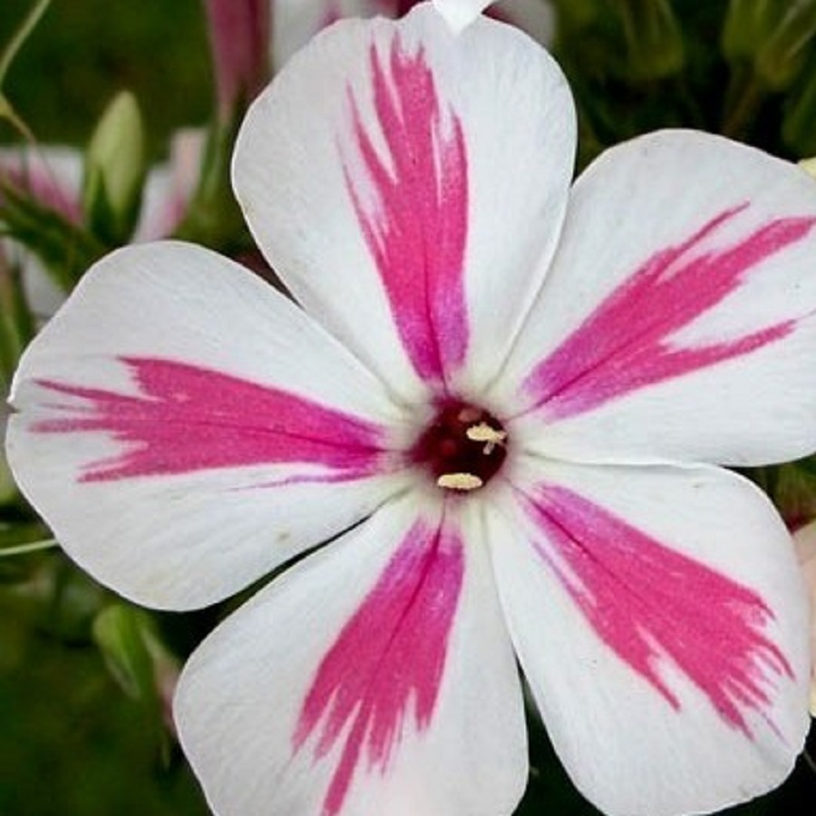 Рассада флокса Торнадо (Twister) достаточно популярный сорт благодаря своей высокой стойкости к неблагоприятным метеоусловиям. Растение представляет собой кусты высотой около 70 см с плотными метельчатыми соцветиями шарообразной формы. Его цветы имеют белый окрас с яркими розовыми полосками по центру каждого лепестка.
