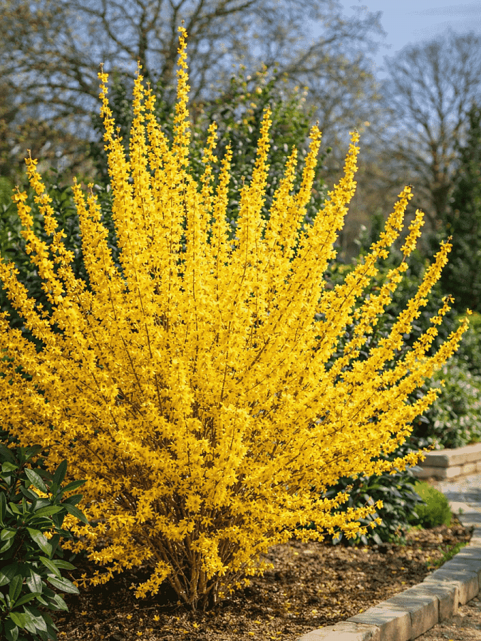 Листья форзиции имеют зазубренную золотисто-желтую кайму, что делает растение уникальным и привлекательным на протяжении всего сезона. Оно предпочитает солнечные места и влагоемкие почвы, поэтому выберите для него подходящее место в саду.