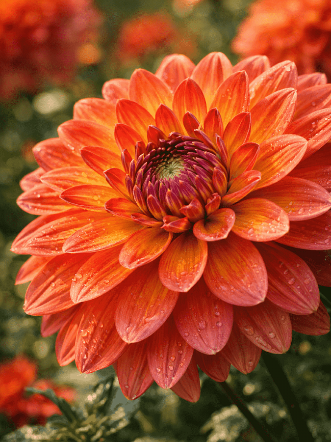 Георгина Graceland - это великолепное растение с оранжево-розовыми цветками, которое поражает своей красотой и изяществом. Ее стебли достигают высоты до 120 см, создавая великолепный вид в саду или на клумбе. Листья георгины Graceland имеют интересную форму и яркий зеленый оттенок, что делает растение еще более привлекательным.