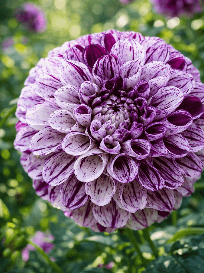 Георгина шаровидная марбл болл - это великолепное растение с бордовыми цветками, украшенными белым меланжем. Ее стебель прочный и прямой, достигает высоты до 90 см. Листья георгины имеют интересную форму и яркий зеленый оттенок, что делает растение еще более привлекательным.