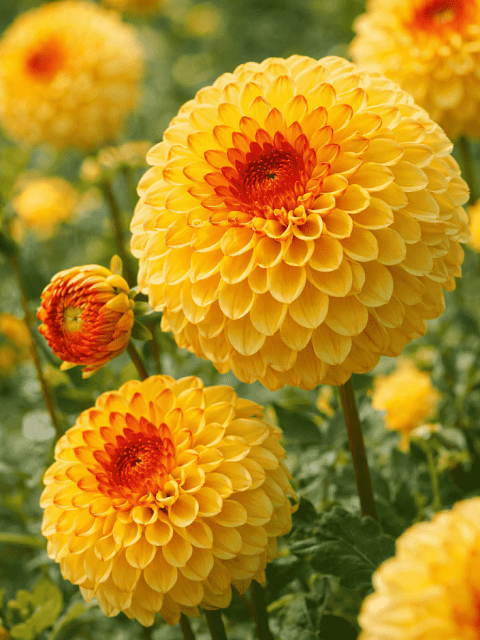 Георгина sunny boy - это великолепное растение с яркими желто-красными цветками, которые радуют глаз своей красотой и изысканностью. Этот сорт георгин отличается высотой до 90-100 см и размером цветка 10-12 см, что делает его идеальным выбором для групповых и одиночных посадок. Листья георгины sunny boy имеют интересную форму и придают растению особый шарм.