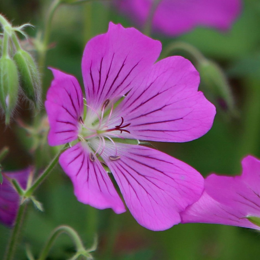 Рассада герани гибридной Sirak (Аистов клюв Geranium hybrid) требует достаточно плодородных и влажных почв. Для обильного цветения растение нуждается в достаточном солнечном освещении. Куст довольно плотный, 20-30 см в высоту. Хорошо смотрится на переднем крае бордюров, миксбордеров, в каменистых садах и различных композициях, выполненных в естественном стиле. Красивые розово-фиолетовые цветы герани гибридной Sirak распускаются в середине лета. Их диаметр до 4 см. Лепестки окрашены в красивый розово-сиреневый оттенок, на фоне которого виднеются темные прожилки.