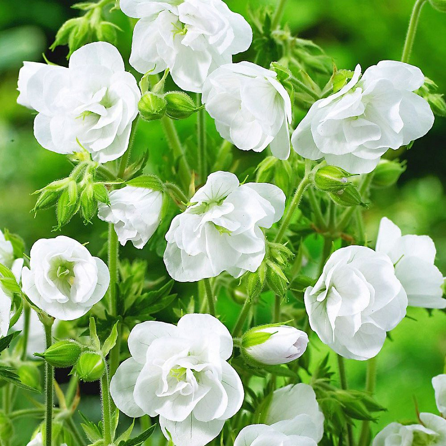 Саженцы герани Лаура (Laura) предпочитают светлое или полутенистое место. Почва должна быть умеренно влажная, глинистая, богатая питательными веществами. Цветение длительное и обильное, с июня по август. Цветки бело-зеленого цвета., махровые. Высота многолетника достигает до 60 см. Саженцы герани "Лаура" используют в травянистом бордюре, в ландшафтных посадках в тени деревьев, в ковровых посадках. Сорт морозоустойчивый и хорошо переносит засуху.