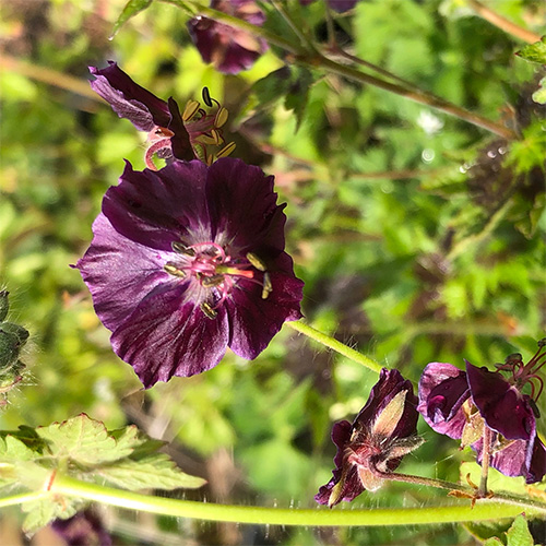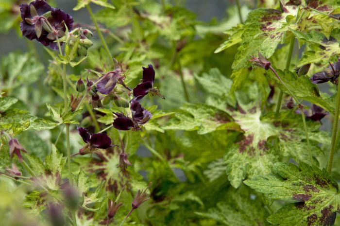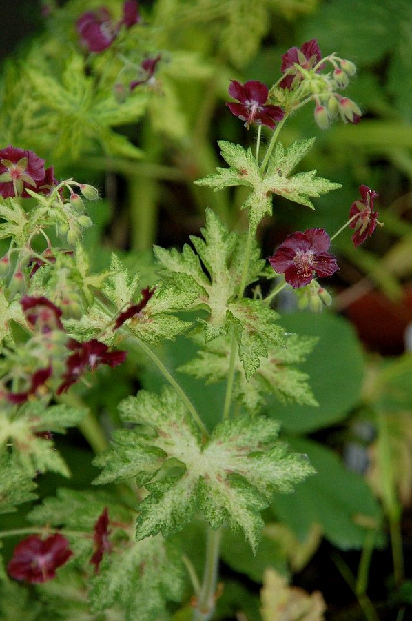 Саженцы герани Спрингтайм (Springtime) неприхотливы в уходе. Они отлично переносят полутень и заморозки, отличаются пышным цветением и быстрым ростом. Это привлекательное декоративное растение с крупными листьями, окрас которых причудливо меняется от весны к осени. Весной у них золотистый центр и коричневая или бордовая окантовка, а осенью золотистый оттенок центра становится бело-кремовым, от чего растение выглядит еще красивее. Цветки под стать листьям – ярко-лиловые, цветут с июля. Используют саженцы герани Спрингтайм в одиночных и групповых цветниках.