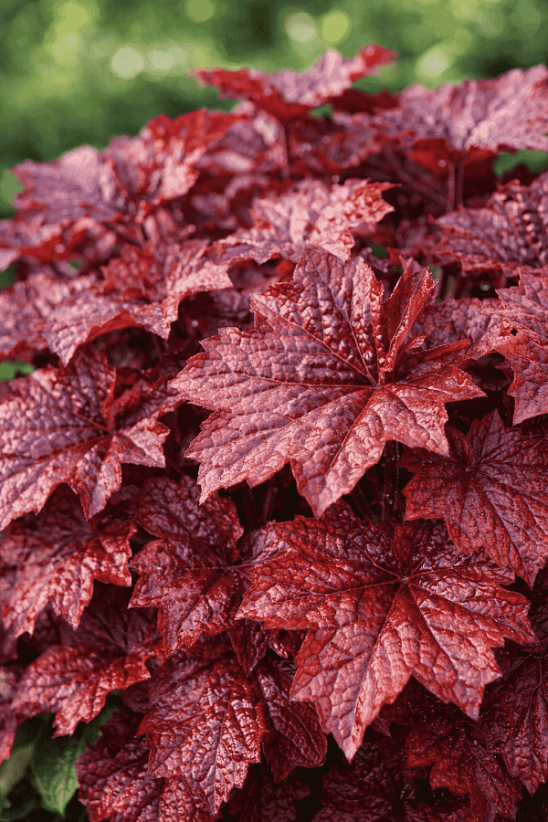 Рассада гейхеры Пурпурный дворец (Palace Purple) действительно выше других сортов, оно вырастает до 30-40 см в высоту и по форме напоминает средневековый замок на высокой скале. Листья от ярко-фиолетовых до тёмно-бордовых с благородным металлическим блеском. Выращивать Palace Purple можно как в помещении, так и на улице, особых требований к уходу нет, помимо избежания избытка влаги и удобрений. При выращивании из семян надо следить за освещением. Цветёт летом с июня по август мелкими белыми цветами, собранными в метёлки-соцветия. На зиму не требует укрытия и выдерживает морозы до -35°С.