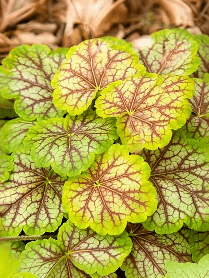 Рассада гейхеры Ван Гог (Van Gogh) очень декоративна, благодаря чему она гармонично вписывается в любые садовые композиции. Многолетник с желто-зеленой листвой, на поверхности которой проступают бордовые прожилки, прекрасно сочетается с осокой, баданом и астибальдой. В конце весны среди листвы появляются длинные стебельки с маленькими белыми цветочками.
