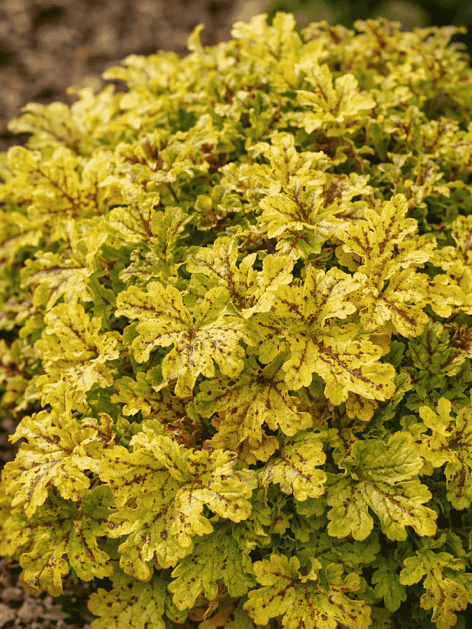 Гейхерелла Spicy Lime - это удивительное растение, которое поразит вас своей красотой и изысканностью. Его ярко-лаймовые листья с темно-красными отметинами создадут неповторимый акцент в вашем саду или огороде. Этот сорт гейхереллы обладает высотой до 20 см и диаметром до 35 см, что делает его идеальным выбором для групповых или одиночных посадок.