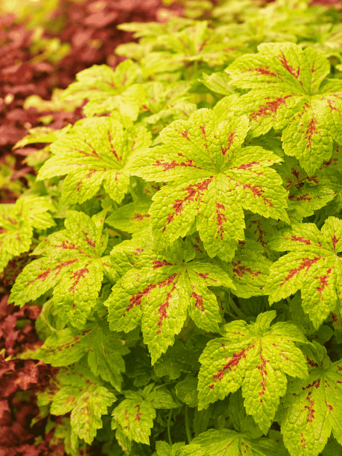 Летняя окраска листвы : Ярко-желтая с красным рисунком