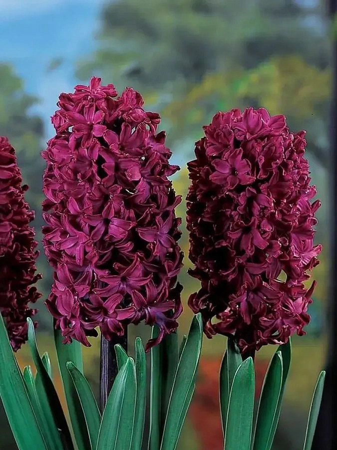 Луковицы гиацинта крупноцветкового Вудсток (Woodstock) ранней весной прорастают в миниатюрные растения, изысканно покрывающиеся матовыми бордовыми цветками. Изюминка сорта – чарующий аромат и рубиновый оттенок лепестков. Плотные зеленые листья обрамляют стебли с соцветиями.