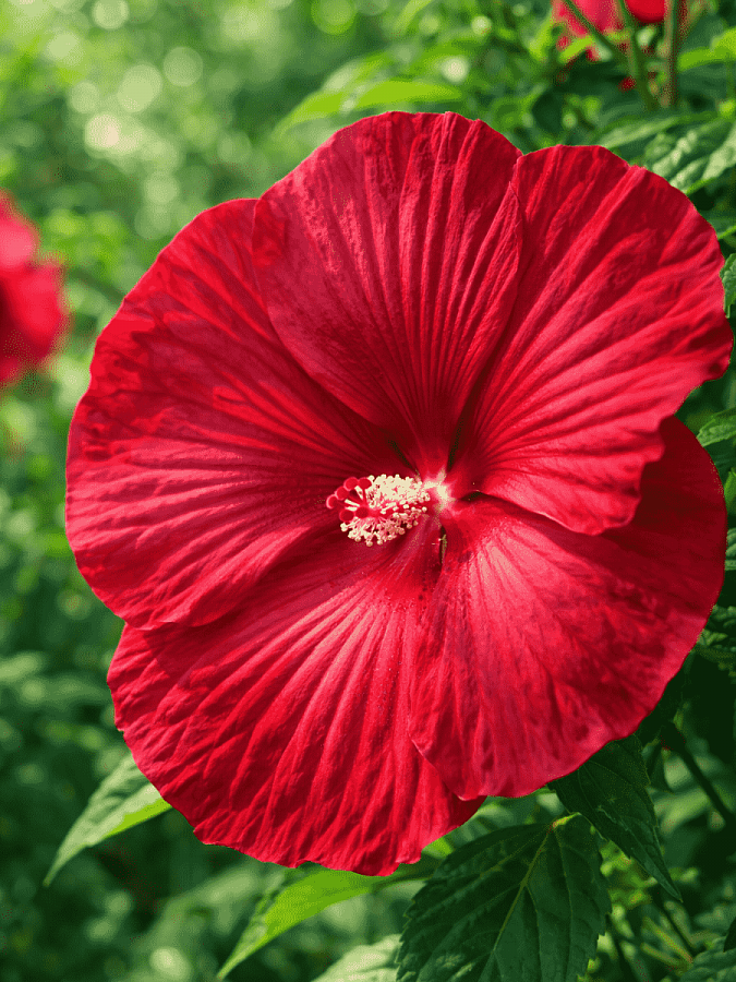 Гибискус мускусный luna red - это великолепное растение с насыщенно-красными цветками, которые радуют глаз своей красотой в июне и октябре. Высота этого растения может достигать до 90 см, что делает его идеальным выбором для групповых или одиночных посадок. Листья гибискуса имеют интересную форму и яркий зеленый оттенок, что придает растению особый шарм.