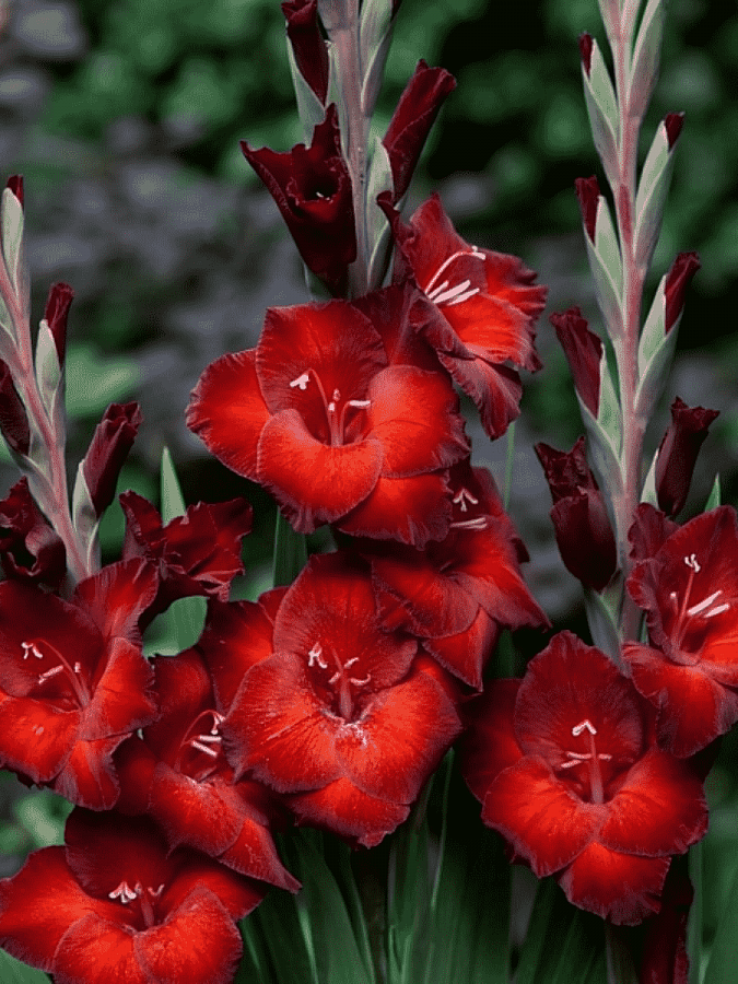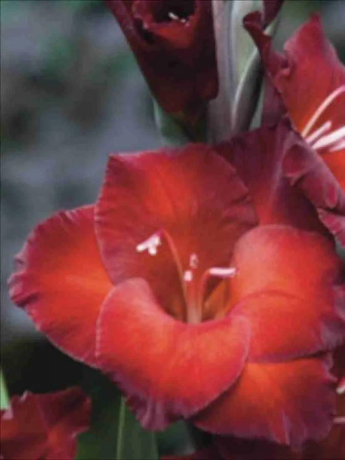 Луковицы гладиолуса гибридного Азурро (Azurro), новинки селекции, сегодня доступны всем садоводам. Растение отличается высокорослостью, до 110 сантиметров, прочным прямостоячим стеблем и тонкими длинными ярко-зелеными листьями. Цветы по 8-10 штук собраны в соцветие «кисть», очень крупные, до 20 сантиметров в диаметре. Лепестки окрашены в насыщенно-красные тона, с плавным переходом от яркого до темного. Слегка волнистые края придают цветку изысканности и шарма. Сорт Azurro – украшение коллекции любителей гладиолусов. Он прекрасно смотрится в букетах и композициях, символизирующих любовь и страсть.