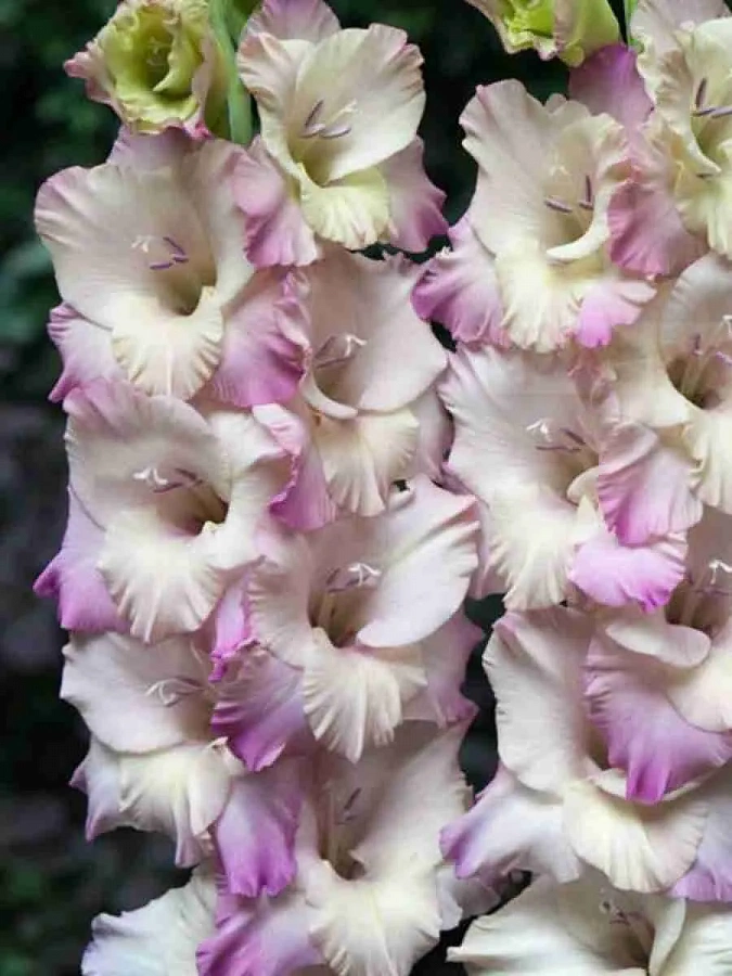 Луковицы гибридного гладиолуса Темпере (Tampere) позволят преобразить свой участок в бело-лиловую цветущую поляну. Плотные соцветия с гофрированными лепестками смотрятся очень нежно и в то же время объемно, заполняя собой все свободное пространство на стебле. Такие гладиолусы хорошо смотрятся в сложных композициях и в одиночных посадах. Они легко переносят практически любое соседство, но очень требовательны к свету и влаге. Сажают луковицы Tampere в хорошо увлажненный, рыхлый грунт, цветы постоянно нуждаются в удобрении и не переносят затенения.