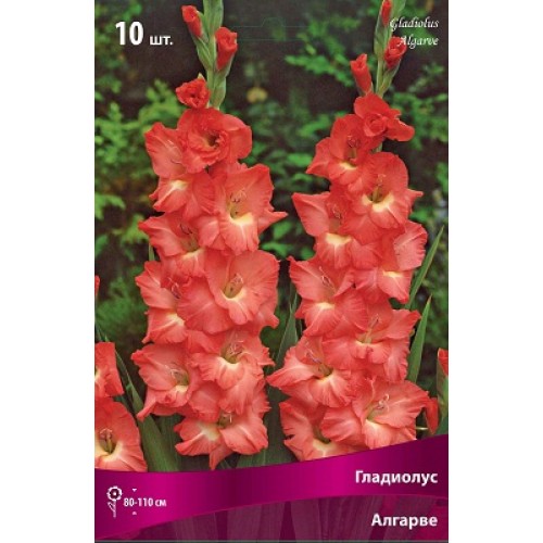 Гладиолус крупноцветковый "Алгарве" - это великолепное растение с красивыми крупными цветками, окрашенными в яркий красный цвет с белой серединой. Его стебель достигает высоты от 80 до 110 см, что делает его заметным акцентом в любом саду. Листья гладиолуса имеют стройную форму и придают растению изящный вид.