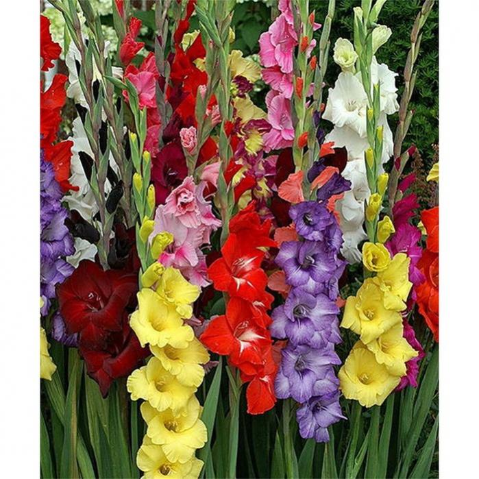 Гладиолус крупноцветковый смесь окрасок - это великолепное растение, которое поразит вас своей красотой и изяществом. Стебли этого гладиолуса достигают высоты до 120 см, а его цветы радуют глаз разнообразием окрасок - от нежного розового до яркого красного. Листья зеленого цвета создают прекрасный контраст с яркими бутоны цветов.