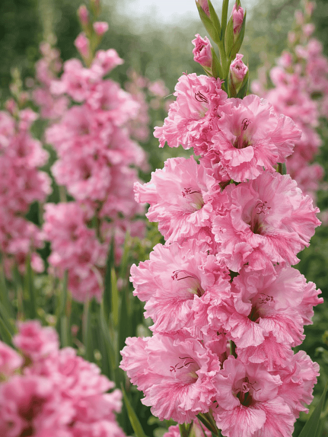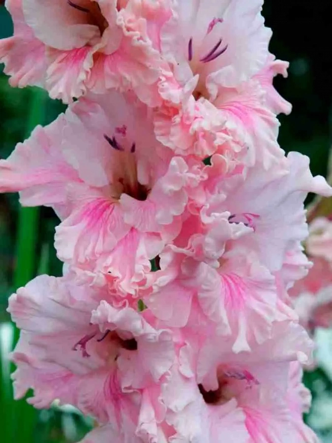 Гладиолус Самара - это великолепное растение с изящными розовыми цветками, которые украсят ваш сад в июле и сентябре. Его стебель достигает высоты до 110-120 см, что делает его заметным элементом в любом саду. Листья гладиолуса имеют стройную форму, что придает растению особый шарм.