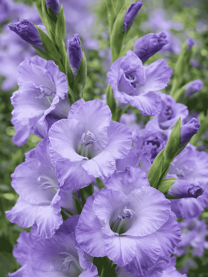 Гладиолус Sweet Blue - это великолепное растение с изящными светло-сиреневыми цветками, которые украсят ваш сад в июле и сентябре. Этот гладиолус достигает высоты до 120 см и предпочитает солнечные места для посадки. Его стебель прочный и прямой, а листья имеют элегантную форму, что делает его идеальным выбором для групповых или одиночных посадок.
