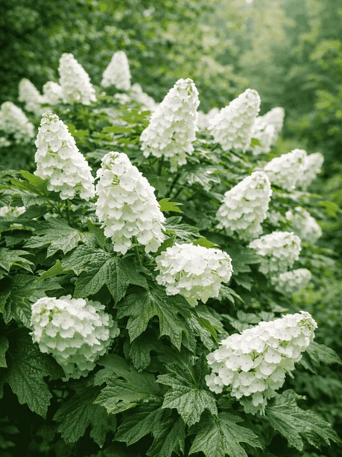 Гортензия дуболистная snow giant - это великолепное растение, которое поразит вас своей красотой и изяществом. Ее ствол прочный и устойчивый, а размеры достигают высоты до 270 см и диаметра до 240 см, создавая великолепный вид в вашем саду. Листья гортензии snow giant имеют форму дуба, что делает ее особенно привлекательной.