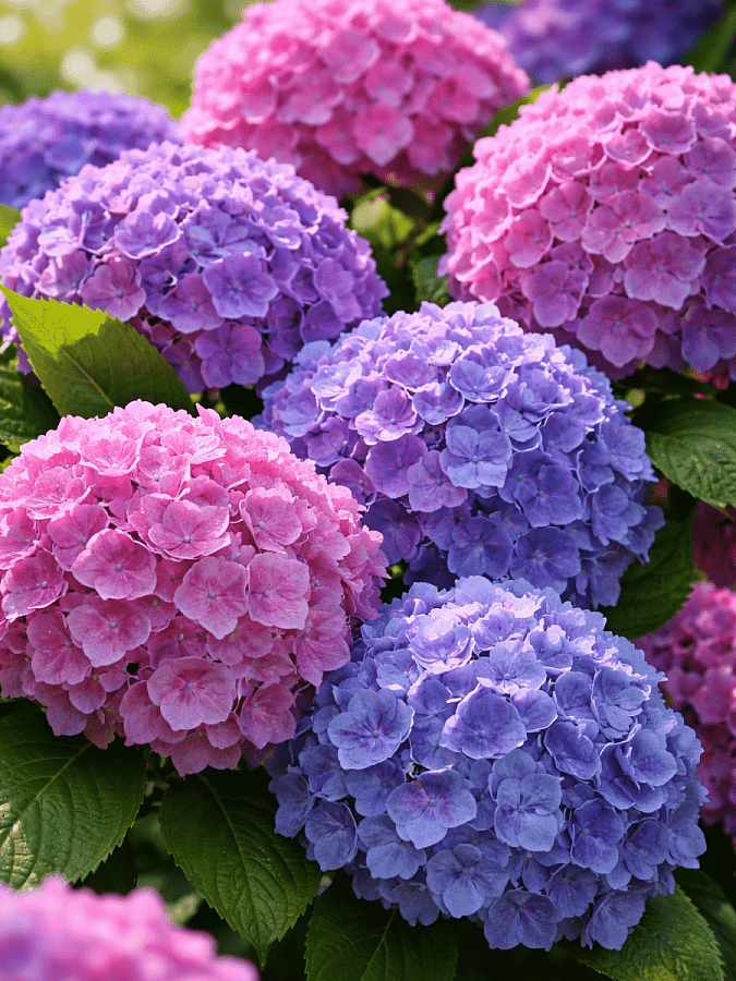 - оттенок цветов зависит от почвы. На кислой – от светло-голубого до насыщенно-синего, а при нейтральной кислотности цветы приобретают розовые тона;
