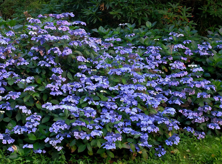 Саженцы Гортензии Крупнолистовой Блю Вейн (blyu veyv) порадуют великолепными пышными цветами на протяжении всего лета. Это красивейший кустарник для вашего сада, прямостоячие стебли в высоту достигают 2 метров, листья крупные, насыщенного зеленого цвета, венчает это великолепие огромные, до 30 сантиметров в диаметре, бутоны нежно-голубого цвета. Растение развивается достаточно быстро и не требует сложной агротехники. Наиболее значимыми являются своевременный полив и достаточное количество солнечного света. Кустарник укрывают на зиму только в случае сильных морозов – до минус 15 градусов.