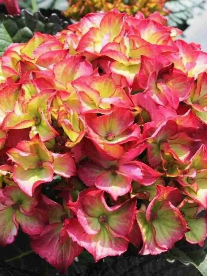Гортензия крупнолистовая Dark Angel - это великолепное растение с красивыми крупными цветками, окрашенными в яркие оттенки красного и фиолетового с зеленой серединкой. Ее латинское название hydrangea macrophylla говорит о крупных листьях, которые весной радуют глаз зеленым оттенком. Этот сорт гортензии достигает высоты до 150 см и диаметра до 70-80 см, что делает его прекрасным украшением для газонов и групповых посадок.