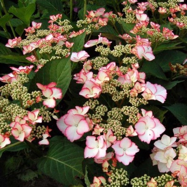 Гортензия крупнолистовая Лав ю Кисс - это волшебное растение, способное принести в ваш сад неповторимую красоту и уют. Ее ствол прочный и изящный, а размеры достигают высоты до 200 см, с диаметром цветка до 20-25 см. Листья гортензии крупнолистовой Лав ю Кисс имеют ярко-зеленую окраску и уникальную форму, что делает растение еще более привлекательным.