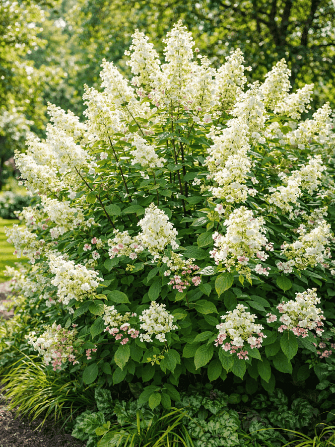 Саженцы гортензии метельчатой Big Ben используются для создания потрясающих композиций, ярких пятен на газоне, а также для формирования живых изгородей. Высота взрослого куста варьируется от 100 до 150 сантиметров. Летом на крепких ветвях распускаются крупные плотные соцветия. Они состоят из многочисленных цветов, лепестки которых постепенно меняют свою окраску с белоснежной на насыщенно-розовую. Саженцы гортензии метельчатой Big Ben обладают высокой морозостойкостью, поэтому могут зимовать без укрытия. Уход за кустами заключается в регулярных поливах, рыхлении поверхности земли и удалении сорняков. Этот сорт отлично переносит формирующую обрезку.