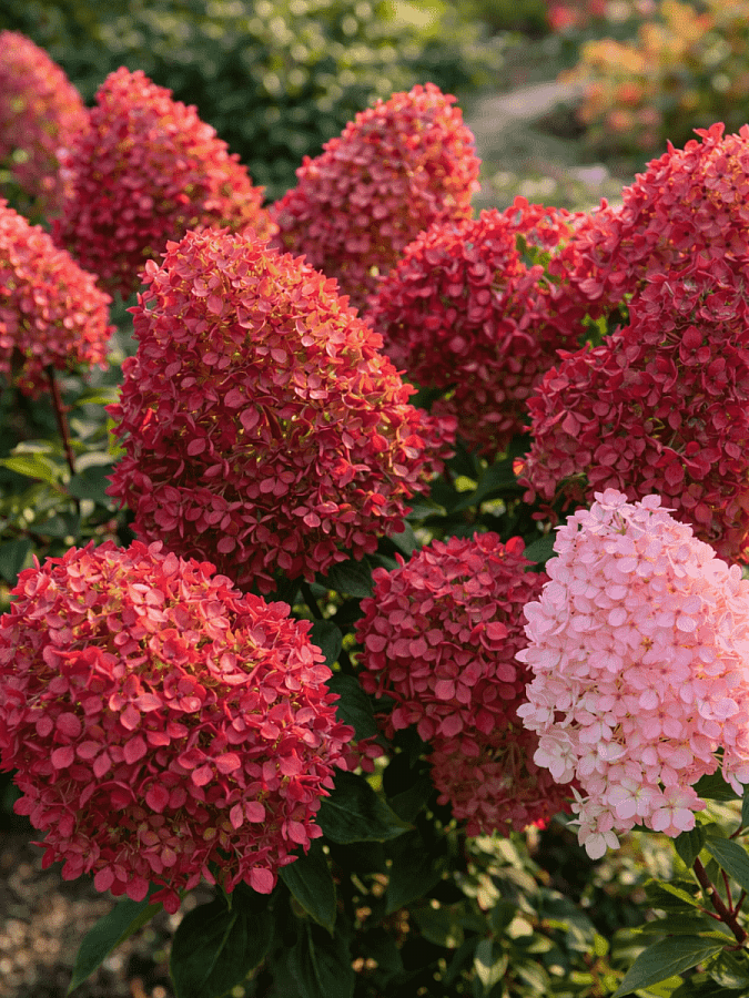 Гортензия метельчатая петит флори патио - это изысканное растение с великолепными цветами, которые меняют свой оттенок от лаймово-белого до темно-вишнево красного. Этот сорт гортензии, созданный в 2022 году во Франции, порадует вас своими красками с июня по октябрь. Высота растения достигает 80 см, а диаметр - 40 см, что делает его идеальным для газонов, групповых и одиночных посадок. Листья гортензии зеленеют весной, остаются зелеными летом и желтеют осенью, создавая яркий контраст.
