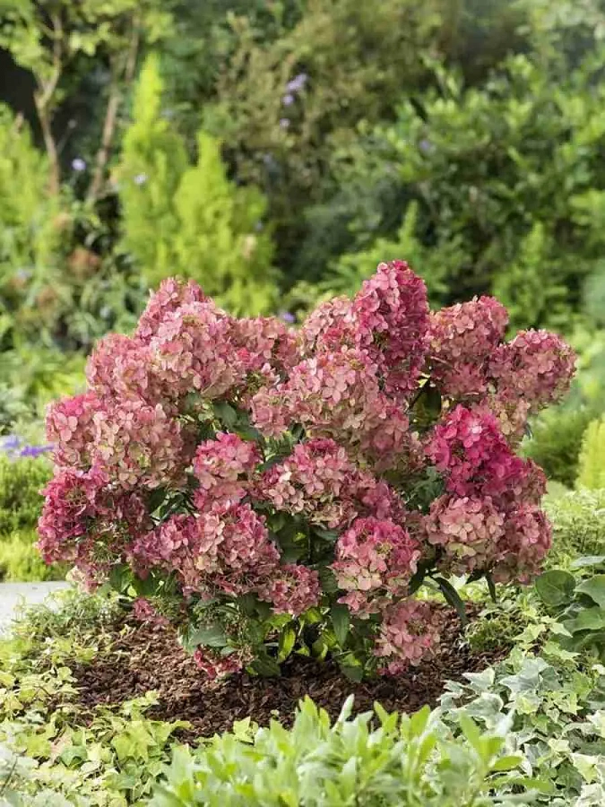 Гортензия метельчатая петит стар - это изысканное растение с неповторимым шармом и нежностью. Ее стволы прочные, а размеры компактные, что делает ее идеальным выбором для оформления газонов или групповых посадок. Листья гортензии имеют форму ланцета и создают удивительный контраст с яркими цветами, меняющими свой оттенок от лаймового до красного.