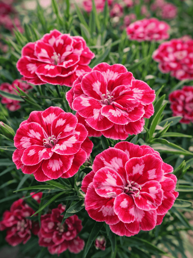 Гвоздика diantica strawberry cream - это изысканное растение с нежными цветами розово-сиреневого оттенка, которое поражает своей красотой и изяществом. Этот сорт гвоздики отличается компактным размером до 30 см и прекрасно подойдет для групповых и одиночных посадок в саду. Листья зеленого цвета создают яркий контраст с цветками, делая растение еще более привлекательным.