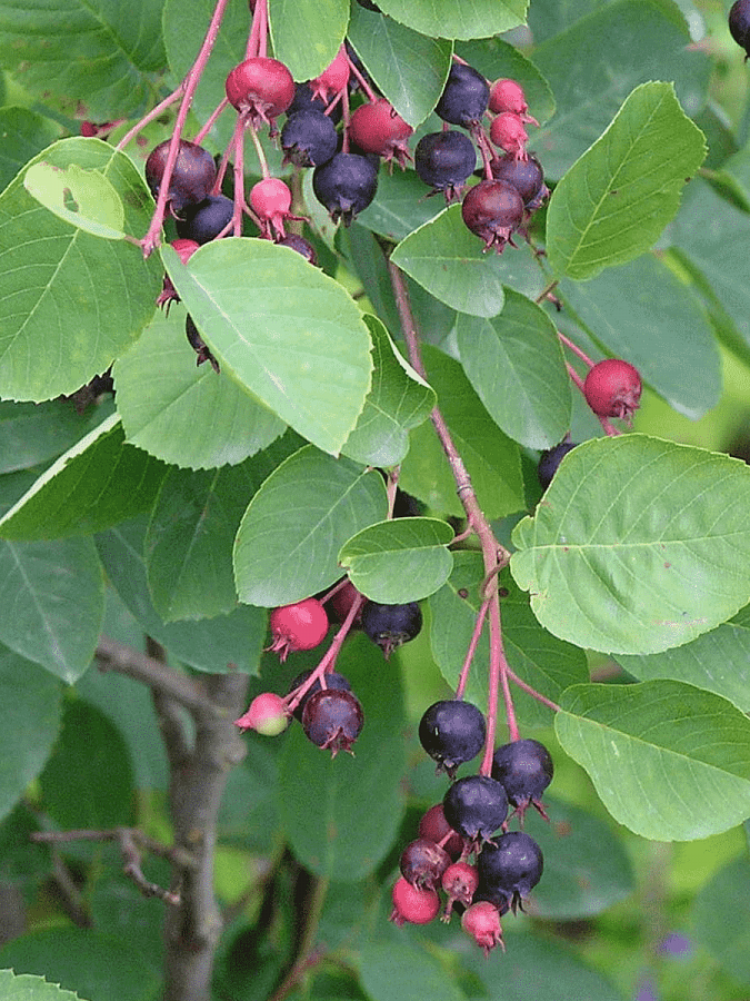 Ирга колосистая – многолетний кустарник с жизненным циклом около 30 лет, вырастает до 2— 5 м в высоту. Растение имеет прямые, тонкие, маловетвистые стволики. Молодые побеги сначала беловато-войлочно-опушенные, позже – они голые, пурпурно-коричневого цвета, блестящие. Кора темно-серого цвета, почти черная. Листья округло-овальные, яйцевидные, очередные, до 2,5 см. Их цвет – сначала серебристо-белый при распускании, потом темно-зеленый, а осенью – светло-желтый или красный. Цветет ирга в мае. Цветки двуполые, белого цвета, собранные в густые верхушечные щитковидные кисти по 5-8 штук. Плоды созревают в августе-сентябре (созревание неодновременное). Они мелкие, округлой формы, яблоковидные, размером с горошину. Окрас плодов сначала зеленый и красный (незрелые плоды), а потом — черный с сизым налетом (зрелые). Мякоть плодов сочная и сладкая, по вкусу напоминает корицу и изюм. Ирга колосистая имеет довольно много преимуществ по сравнению с прочими садовыми кустарниками. К таковым относятся: