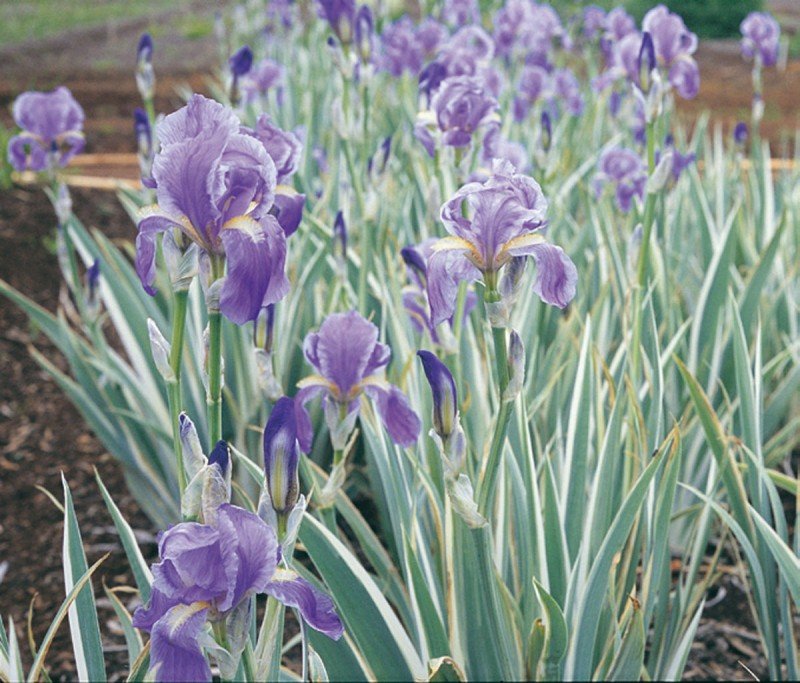 Рассада ириса бледного Albo variegata ценится за неприхотливость и декоративность. Растение представляет собой куст высотой до 80 сантиметров, состоящий из мечевидных листьев, на темно-зеленой поверхности которых ярко выделяются светлые полосы. В мае появляются цветоносы, на которых распускаются крупные красивые цветы с нежно-голубыми лепестками. Для посадки рассады ириса бледного Albo variegata лучше всего подходят участки с легкой полутенью. Этот сорт широко применяется в ландшафтном дизайне, его можно использовать для создания ярких смешанных композиций.