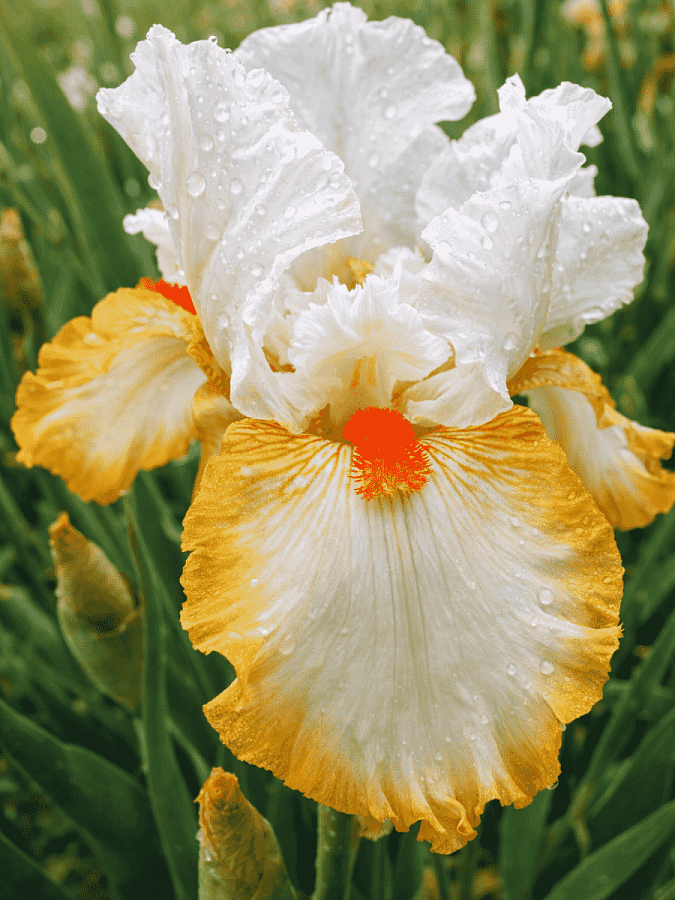 Ирис бородатый хэллоуин хало - это волшебное растение, которое поразит вас своей красотой и изысканностью. Сорт halloween halo привлекает внимание своими белыми цветками с бледно-жёлтой тонкой каймой на нижних лепестках, создавая неповторимый образ в вашем саду. Высота растения достигает до 90 см, что делает его заметным элементом в ландшафте. Листья ириса имеют элегантную форму, придающую растению особый шарм.