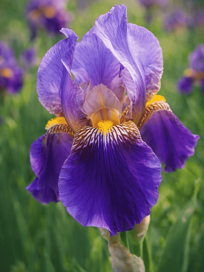 Ирис бородатый lent a. williamson - это великолепное растение с изысканными фиолетово-бордовыми цветками, которые украсят ваш сад в мае и июне. Этот сорт ириса отличается высотой до 120 см и диаметром цветка до 100 см, что делает его настоящим королем среди других растений. Листья зеленого цвета создают прекрасный контраст с яркими цветами, придавая вашему саду особый шарм.