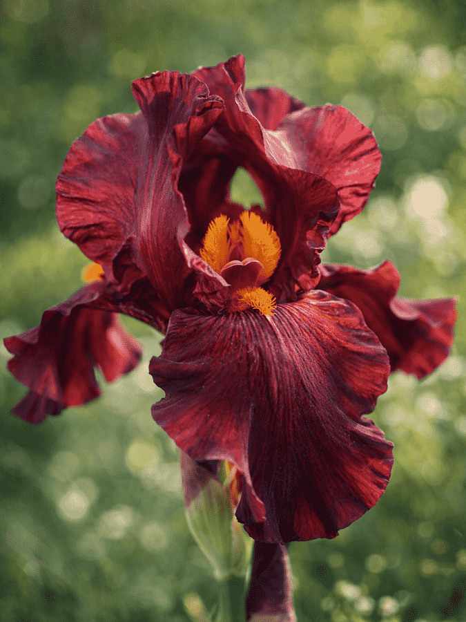 Ирис бородатый респектебл - это великолепное растение с темно-красными, яркими цветками, которые привлекают взгляды и завораживают своей красотой. Высота этого ириса может достигать до 90 см, что делает его заметным акцентом в вашем саду или огороде. Листья имеют интересную форму, что добавляет изюминку в общий вид растения.