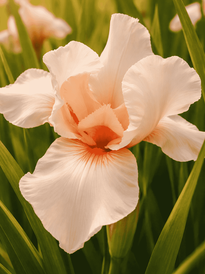 Ирис германский pink empress - это изысканное растение с кремово-розовыми цветками, которые напоминают нежные лепестки бабочек. Сорт отличается высокой морозостойкостью и может процветать в самых разных климатических условиях, включая московскую область. Высота растения достигает 80 см, а размер цветка поражает своей величественностью - до 15 см. Летом листва приобретает светло-зеленый оттенок, создавая яркий контраст с цветками.
