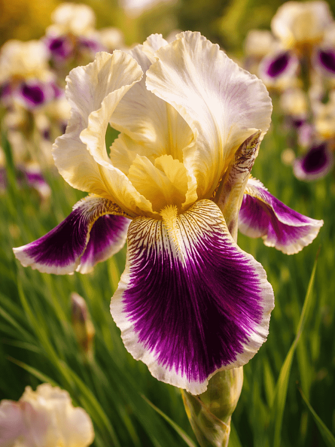 Ирис германский salonigue - это изысканное растение с кремово-желтыми цветками, которое поразит ваш взгляд своей красотой. Этот ирис отличается высотой от 60 до 90 см и цветет в мае и июне, радуя глаз своими яркими лепестками. Листья данного растения имеют узкий и длинный вид, что придает ему особый шарм.