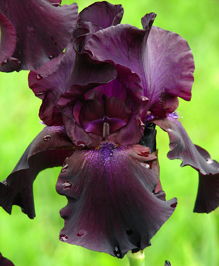 - продолжительное цветение. Распустившиеся бутоны имеют темный свекольный оттенок. Лепестки немного волнистые, с фиолетовой бородкой снизу и рыжей сверху. Семенами размножается плохо, предпочтительнее вегетативный способ. В качестве места посадки ириса германского Суеверие лучше выбирать места с ярким солнцем и отсутствием порывов ветра.