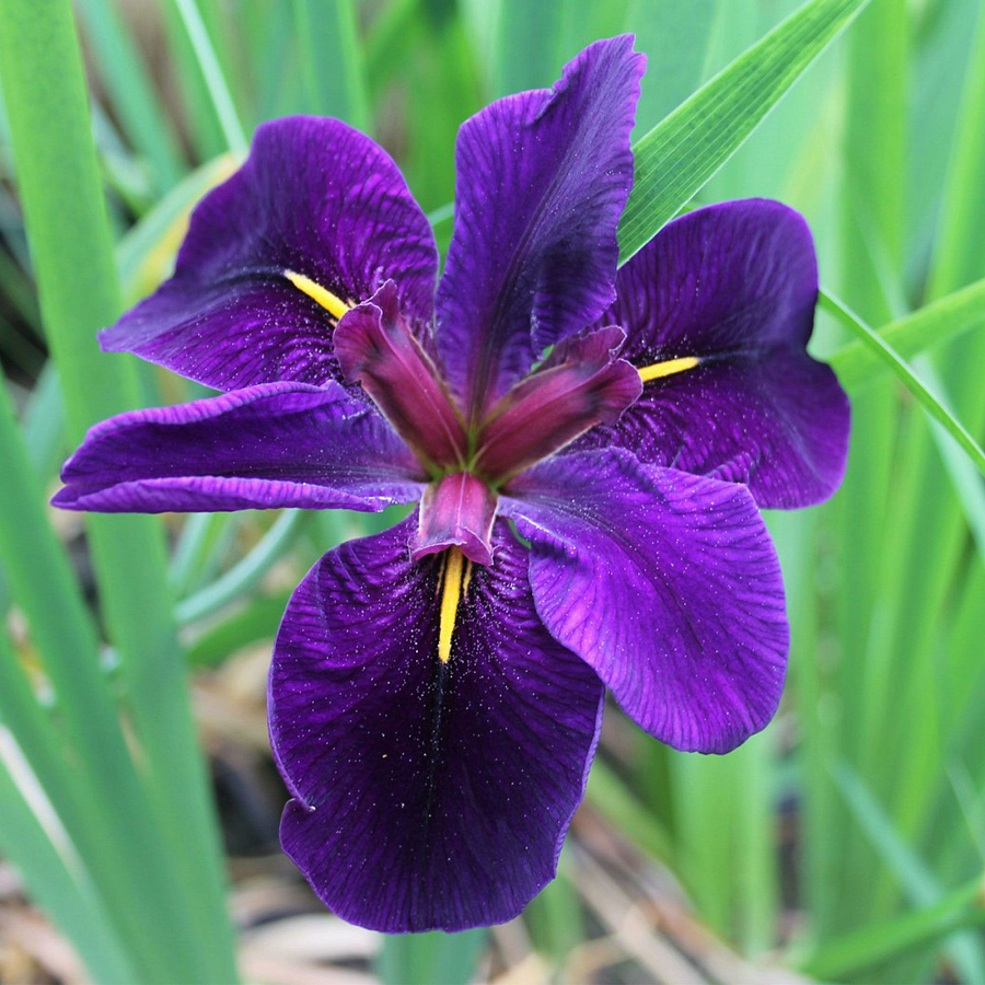 Ирис луизианский блэк геймкок - это великолепное растение с темно-пурпурно-фиолетовыми цветками, украшенными желтыми полосками. Его высота может достигать до 70 см, что делает его идеальным выбором для создания красивых цветочных композиций в саду. Листья ириса имеют темно-зеленую окраску и необычную форму, что придает растению особый шарм.