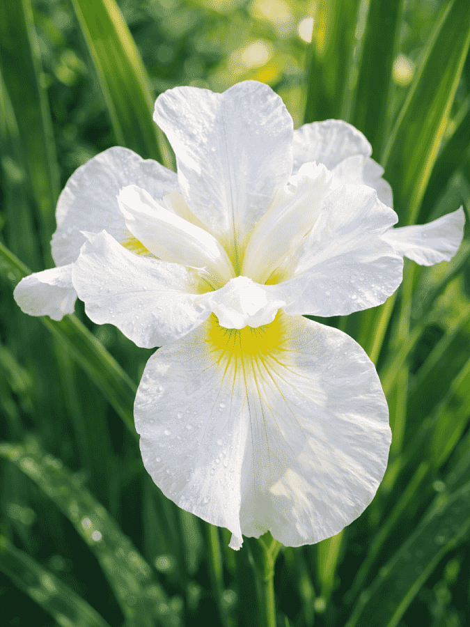 Ирис сибирский ester c.d.m - это изысканное растение, которое поразит вас своей красотой и изяществом. Его стебель достигает высоты до 100 см, а цветки радуют глаз белоснежными лепестками с желтым пятном. Летом листва приобретает светло-зеленый оттенок, создавая удивительный контраст с яркими цветами.