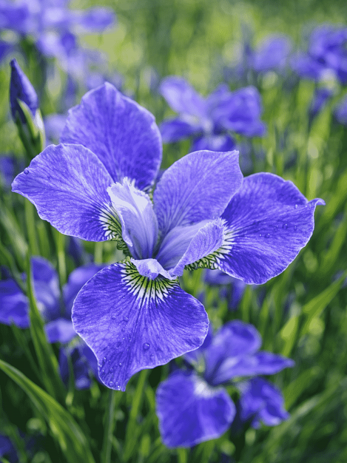 Ирис сибирский Silver Edge - это изысканное растение, которое поразит вас своей красотой и изяществом. Его стебель достигает высоты до 75 см, а цветки сине-фиолетового оттенка радуют глаз в мае и июне. Листья ириса имеют светло-зеленую летнюю окраску, создавая яркий контраст с цветками. Это растение предпочитает солнечные места и отлично смотрится как в групповых, так и в одиночных посадках.