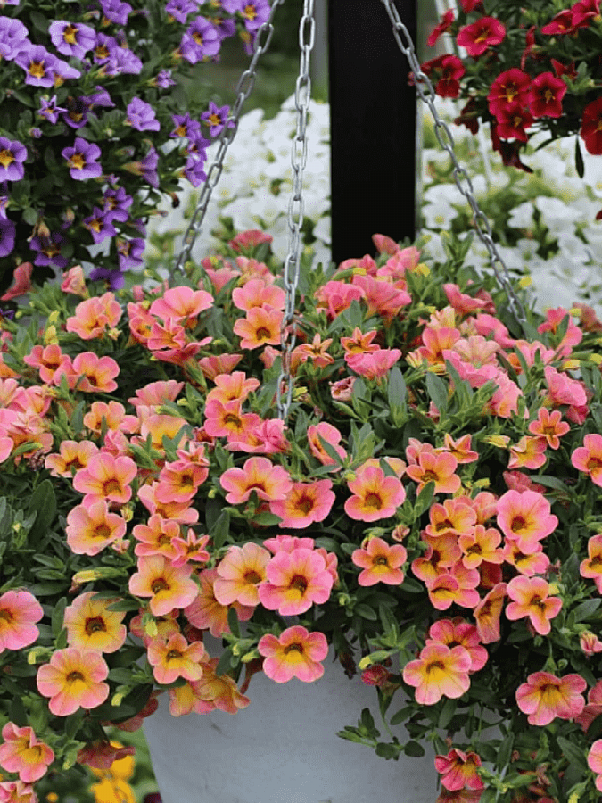 Калибрахоа chameleon cherry banana - это удивительное растение с желто-розовыми цветками, которые напоминают сочные фрукты. Его темно-зеленая листва создает яркий контраст и делает этот сорт неповторимым в саду. Высота растения может достигать до 35 см, что делает его идеальным для групповых или одиночных посадок.
