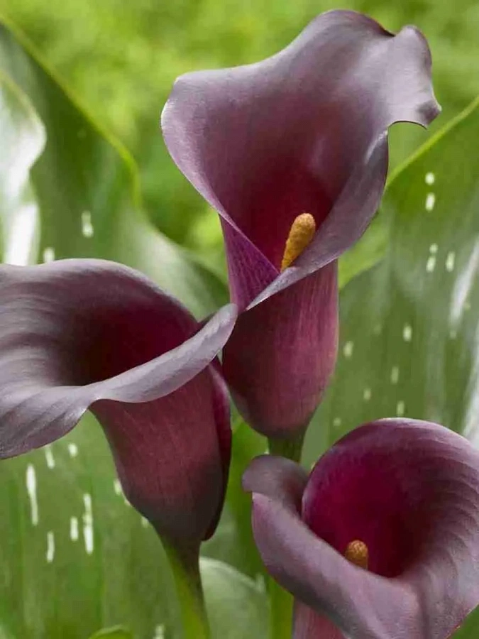 Калла bullit - это удивительное растение с черными цветками, которые привлекают внимание своей необычной окраской. Этот сорт каллы отличается высотой до 30 см и диаметром цветка до 70 см, что делает его идеальным выбором для групповых или одиночных посадок в солнечных местах. Цветение каллы bullit происходит в июле и сентябре, радуя глаз своими крупными цветками размером 10-15 см.