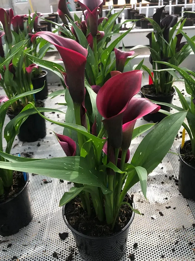 Калла dior - это великолепное растение с черно-фиолетовыми цветками, которые поражают своей красотой и изяществом. Этот сорт каллы отличается высотой до 40 см и диаметром цветка до 15 см, что делает его идеальным выбором для групповых или одиночных посадок в солнечных местах. Калла dior прекрасно проявляет себя в июле и сентябре, радуя глаз своими яркими цветами.
