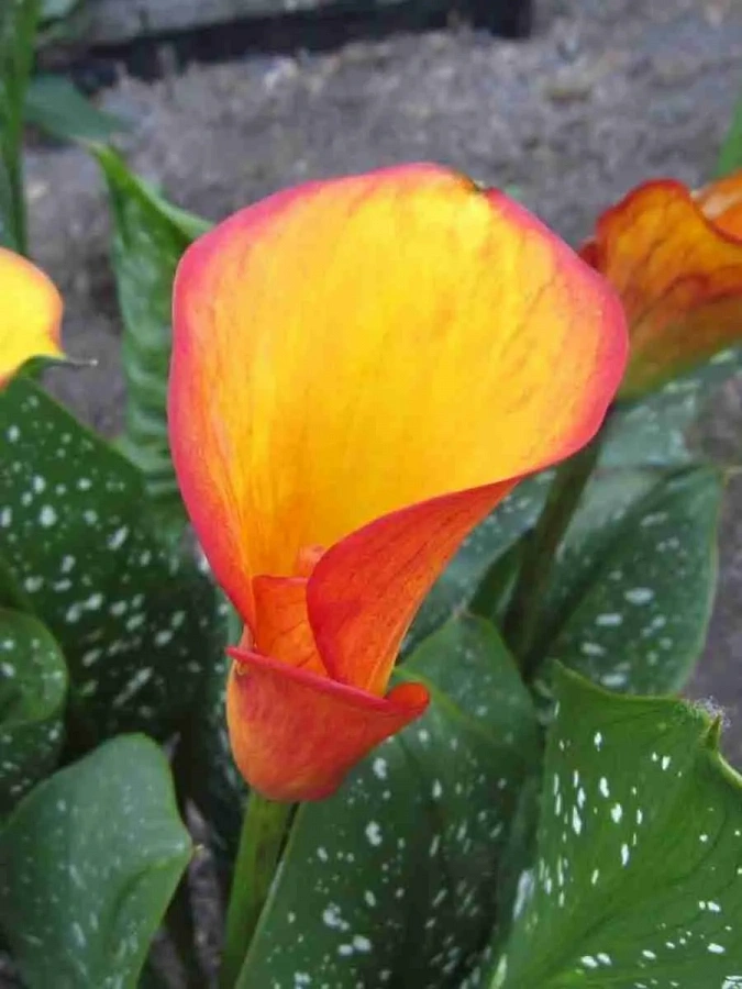 Калла lady marmalade - это великолепное растение с оранжево-красно-жёлтыми цветками, которые привлекают внимание своей яркостью и изысканностью. Этот сорт каллы отличается высотой до 40-50 см и диаметром цветка до 15 см, что делает его идеальным выбором для групповых или одиночных посадок в солнечных местах.