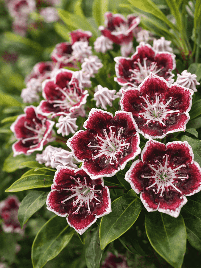 Кальмия широколистная mitternacht - это великолепное растение, которое поразит вас своей красотой и изысканностью. Ее темно-шоколадные цветы с белым краем создают неповторимый контраст и привлекают взгляды как магнит. Высота этого растения может достигать до 120 см, что делает его идеальным для групповых или одиночных посадок в саду. Летом листва кальмии широколистной mitternacht приобретает темно-зеленый оттенок, что добавляет ей элегантности и изыска.